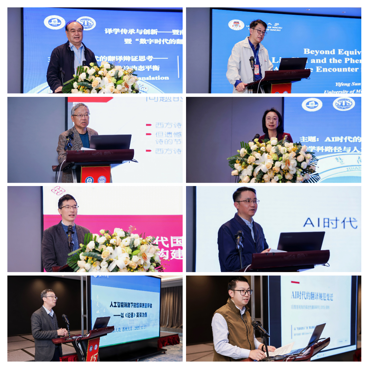 主旨发言环节紧凑而富有成效。来自中国外文局中国翻译研究院、香港浸会大学、香港理工大学、澳门大学、广东外语外贸大学和苏州大学等高校和机构的专家学者,围绕“数字技术与翻译实践融合”“翻译学的人文价值坚守”“跨文化传播中的翻译创新”等前沿议题展开深入交流,分享最新研究成果与实践经验,为与会者带来了一场兼具理论深度与实践价值的学术盛宴。武汉大学熊伟教授、广东海洋大学金志茹教授、华东政法大学宋丽珏教授分别主持了三场主旨发言。