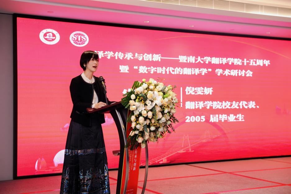 校友代表、珠海华发集团人力资源运营管控部总经理倪雯妍女士分享了求学经历与职业发展,表达了对母校的感恩之情,并表示将持续关注和支持学院发展。
