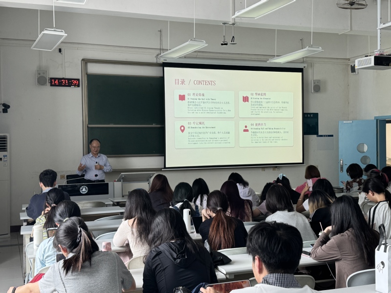 在擘画蓝图环节,邓永忠深入解读党的二十届四中全会精神,梳理“十五五”时期国家发展顶层设计与战略部署,介绍中国式现代化的五大特征与新时代国家发展辉煌成就,让同学们清晰把握国家发展大势,坚定推进中国式现代化的信心与决心。